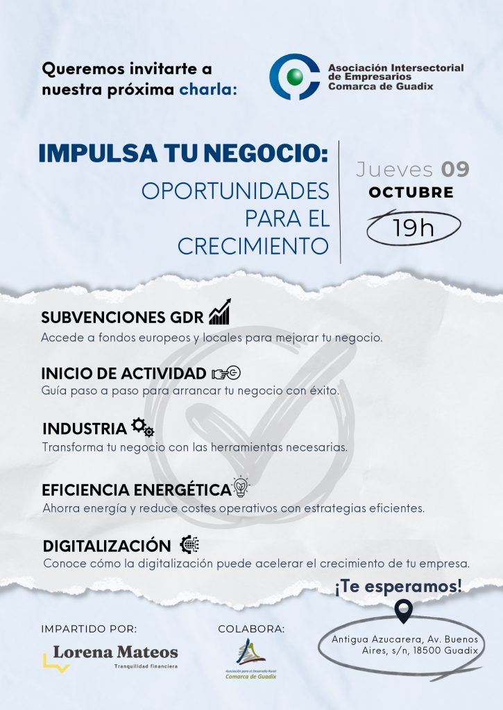 Si estás interesado en asistir, puedes confirmarlo en el correo electrónico gerencia@empresariosguadix.com o bien llamando al 958-669118 en horario de mañana.